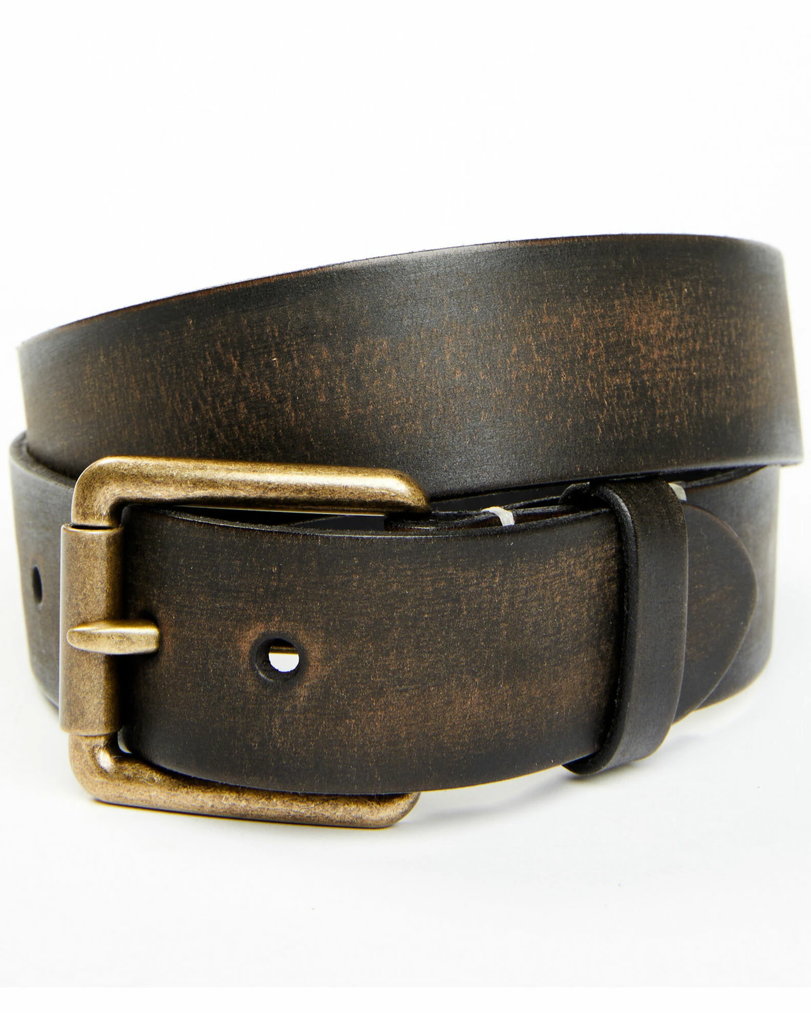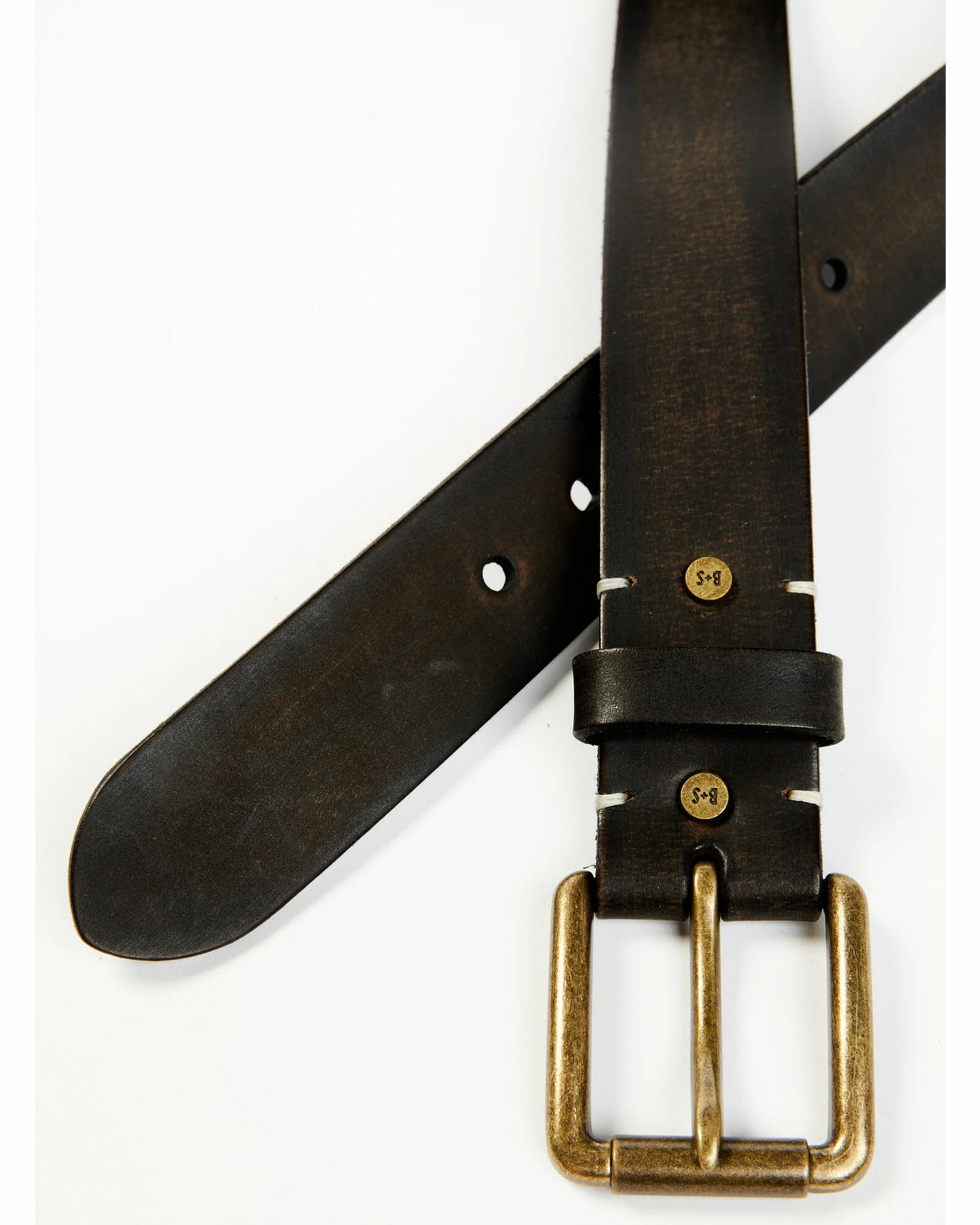 Brothers & Sons Brother & Sons Men’s Black Distressed Leather & Brass Buckle Belt