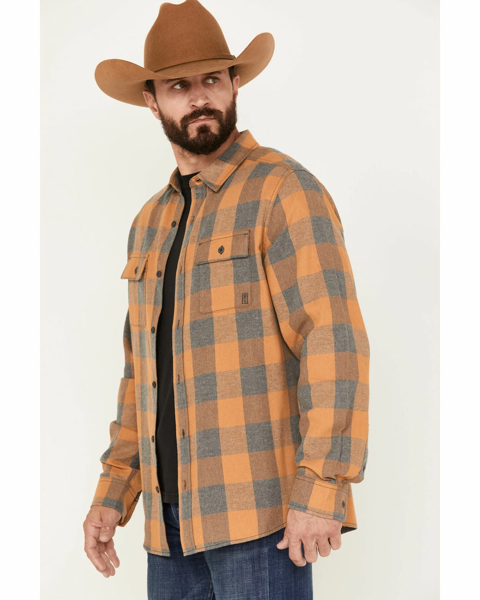 Brothers & Sons Men’s Buffalo Checkered Print Long Sleeve Button-Down Western Shirt Camel