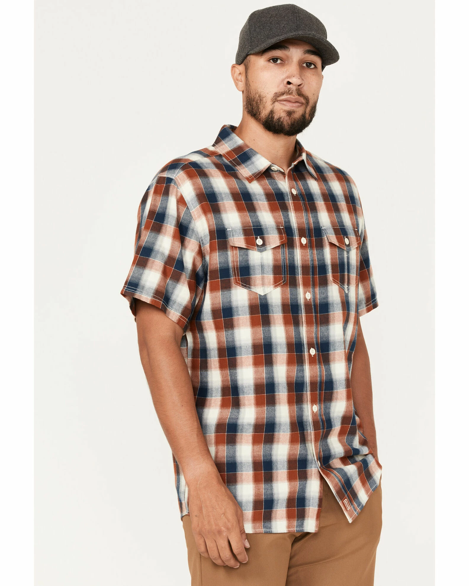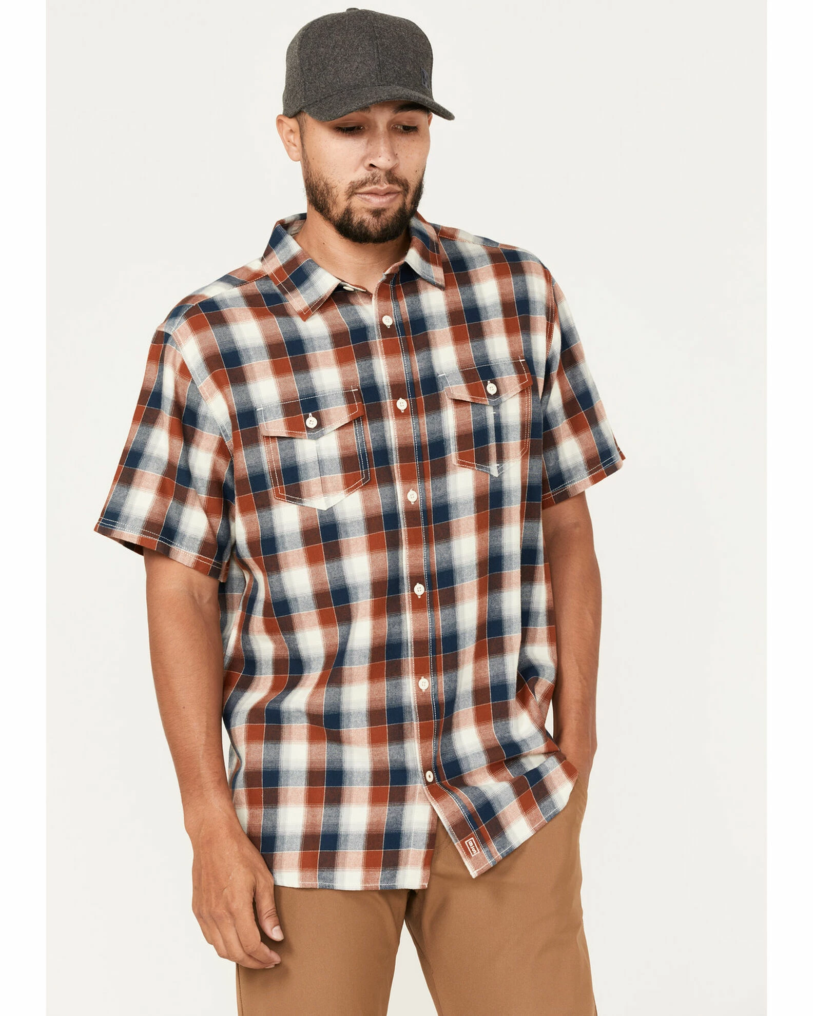 Brothers & Sons Men’s Casual Dark Orange Plaid Short Sleeve Button-Down Western Shirt