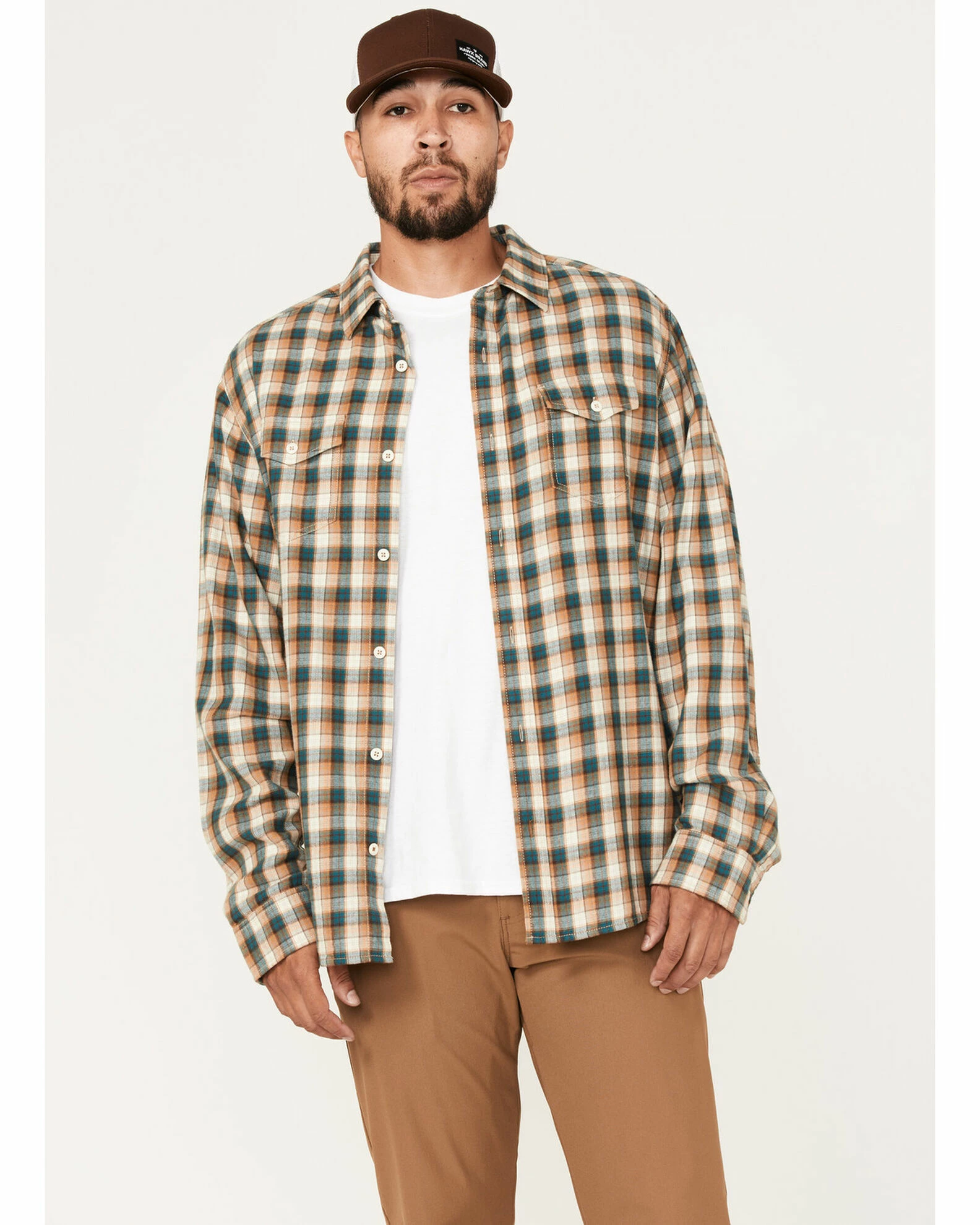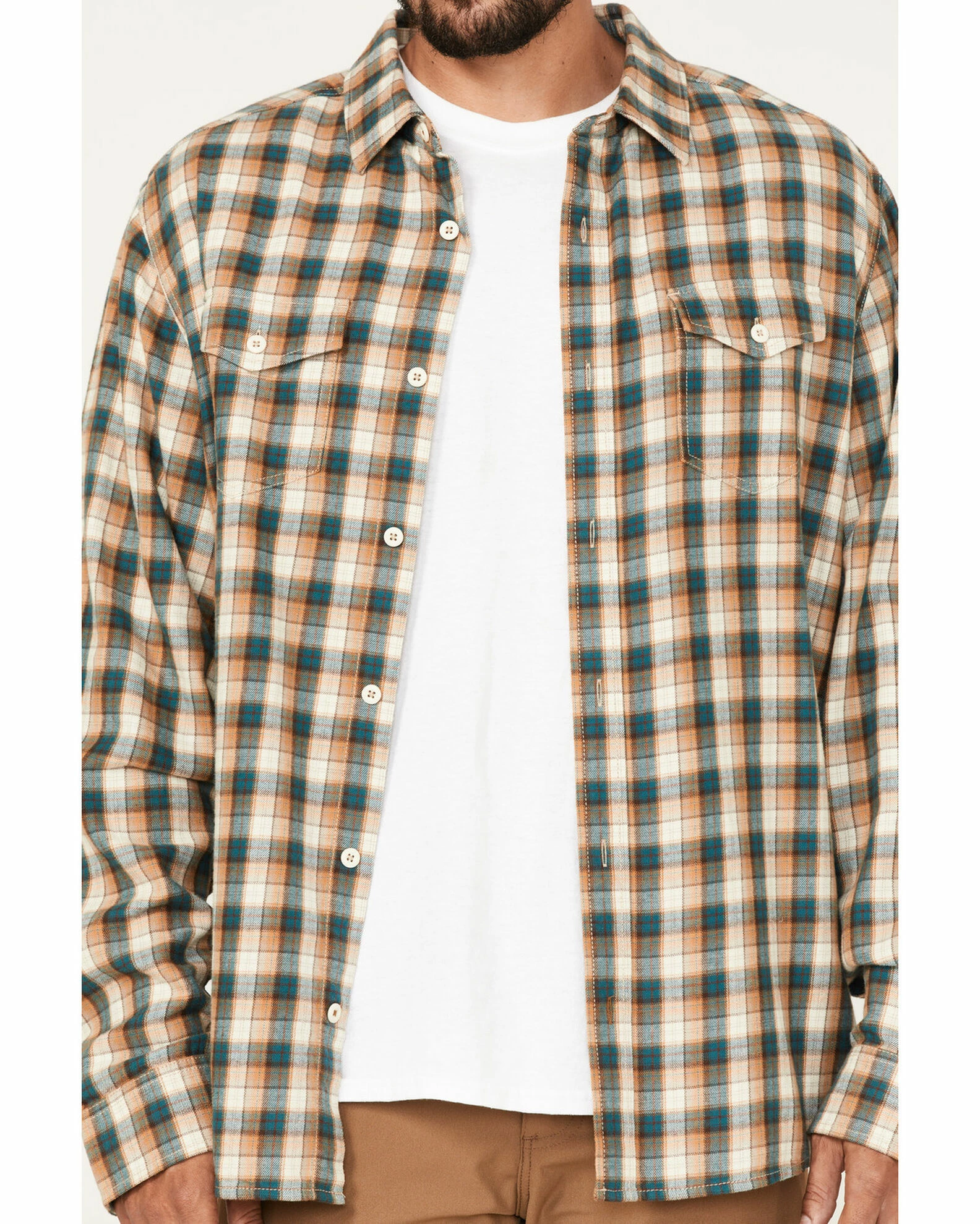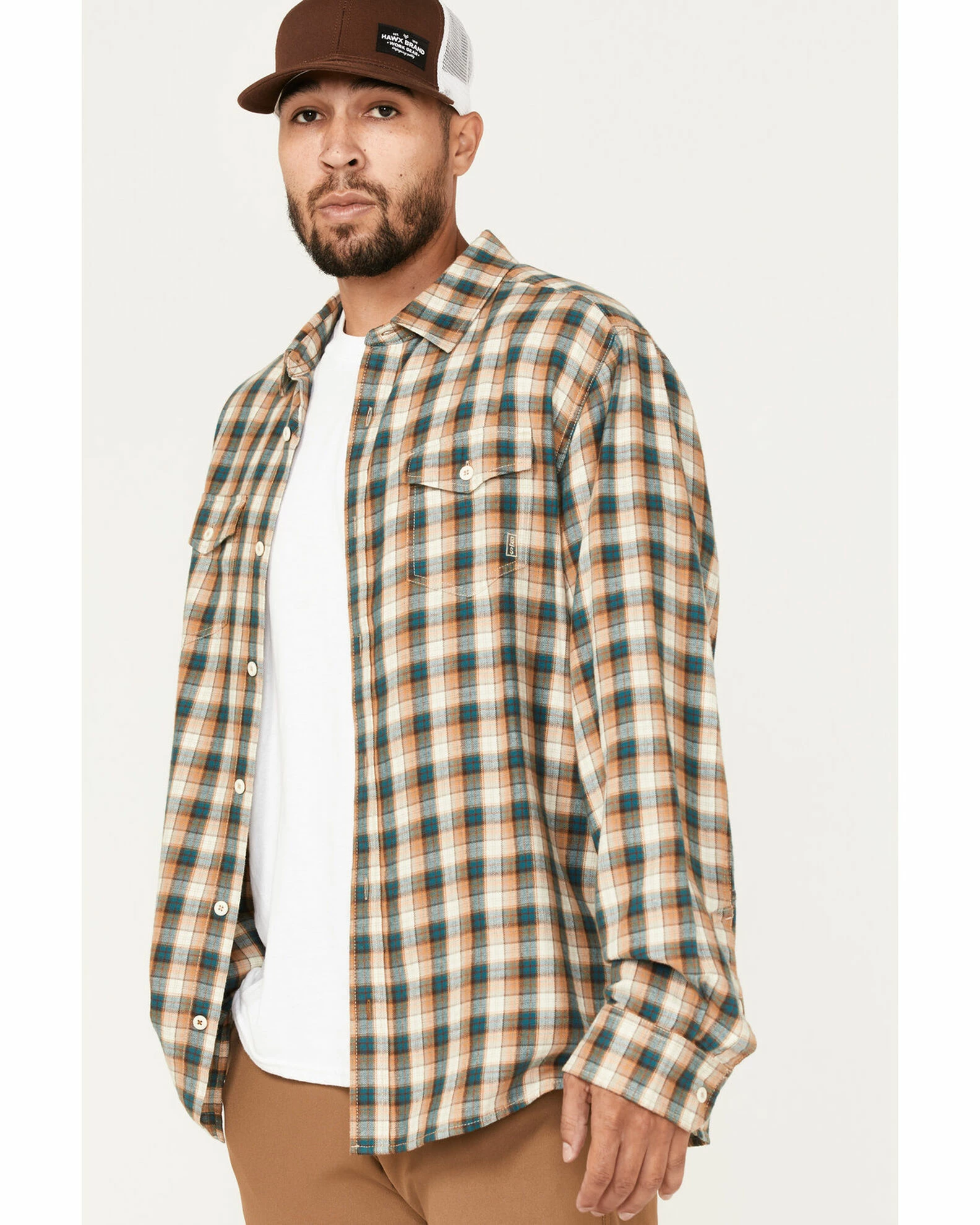 Brothers & Sons Men’s Casual Teal Plaid Long Sleeve Button-Down Western Shirt