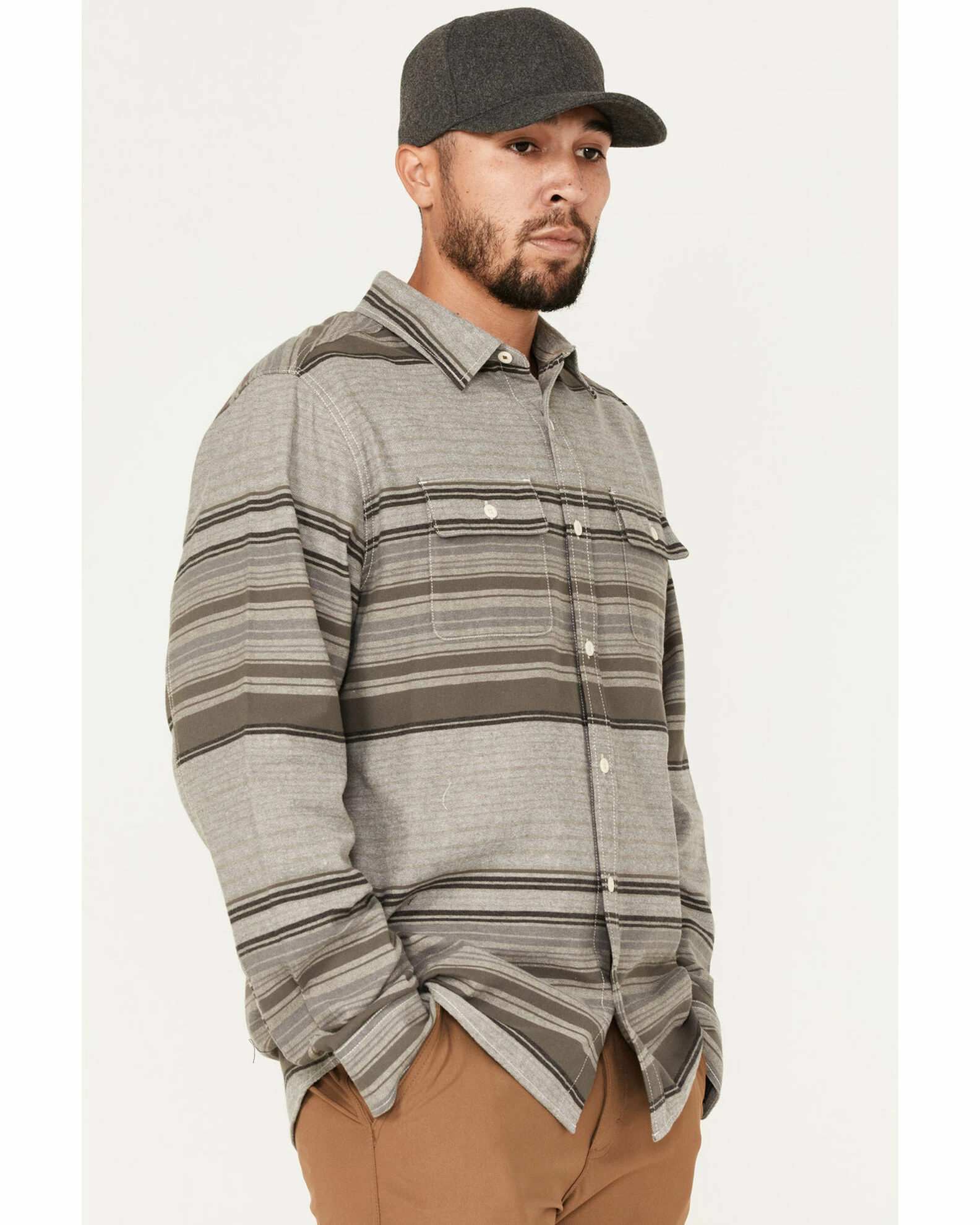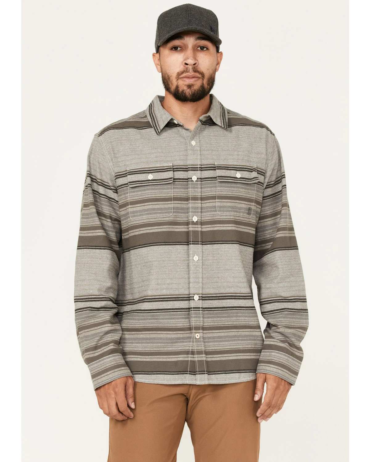 Brothers & Sons Men’s Fineline Stripe Everyday Long Sleeve Button-Down Western Flannel Shirt Sand