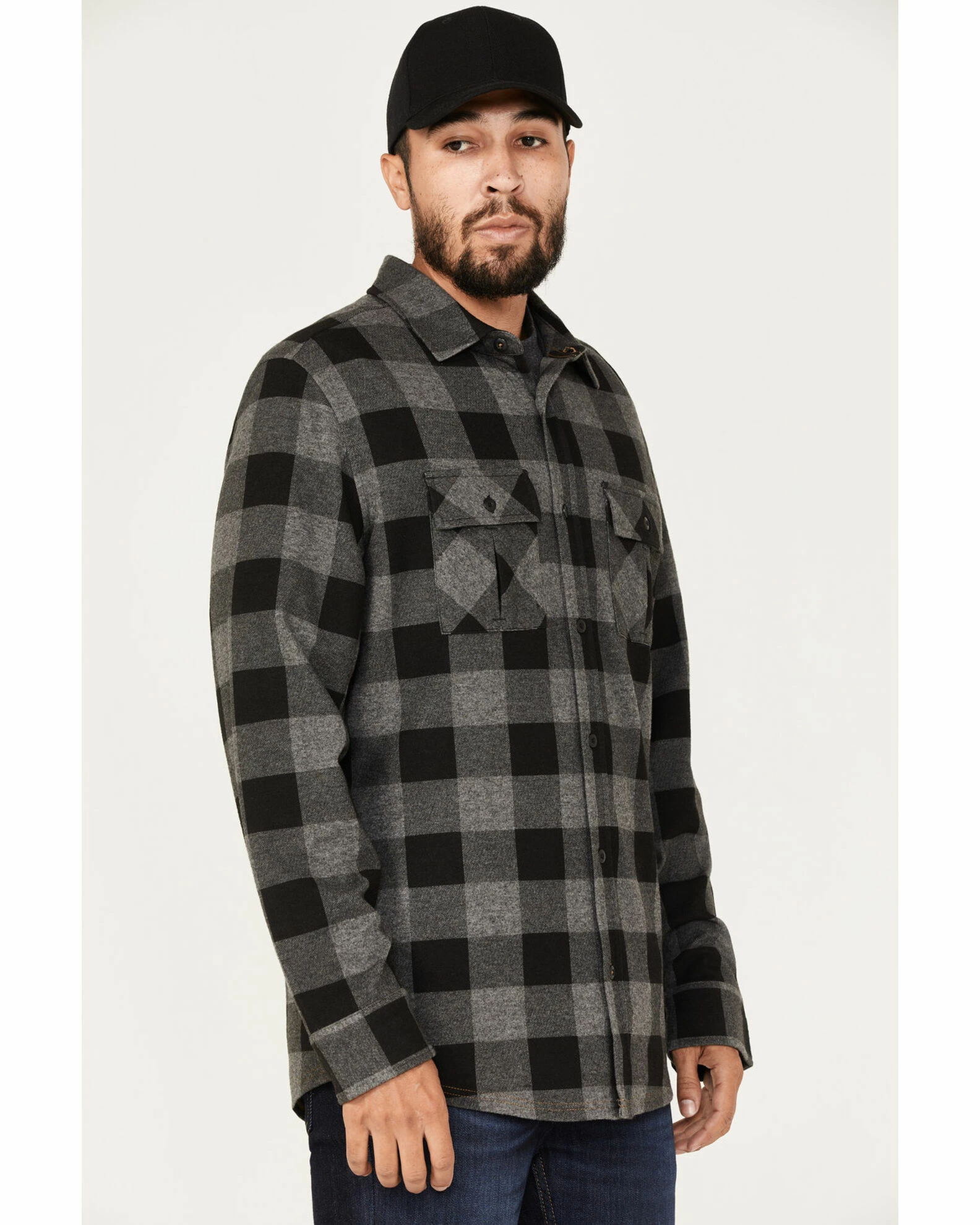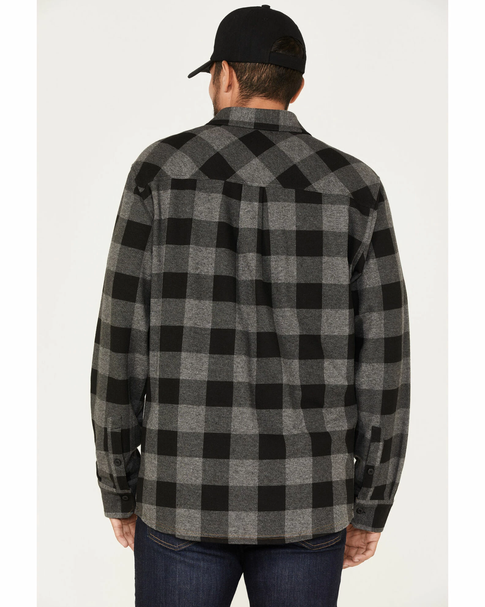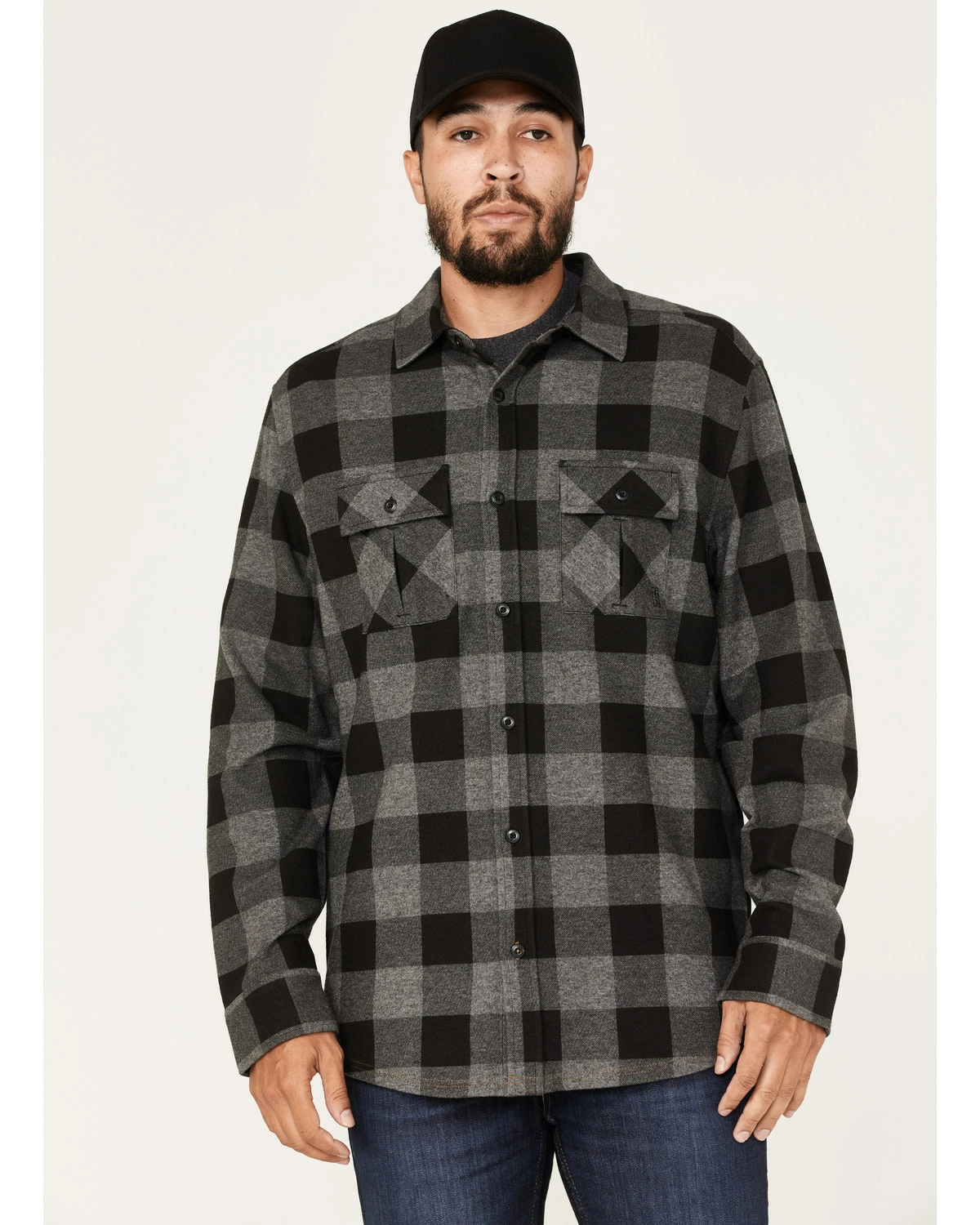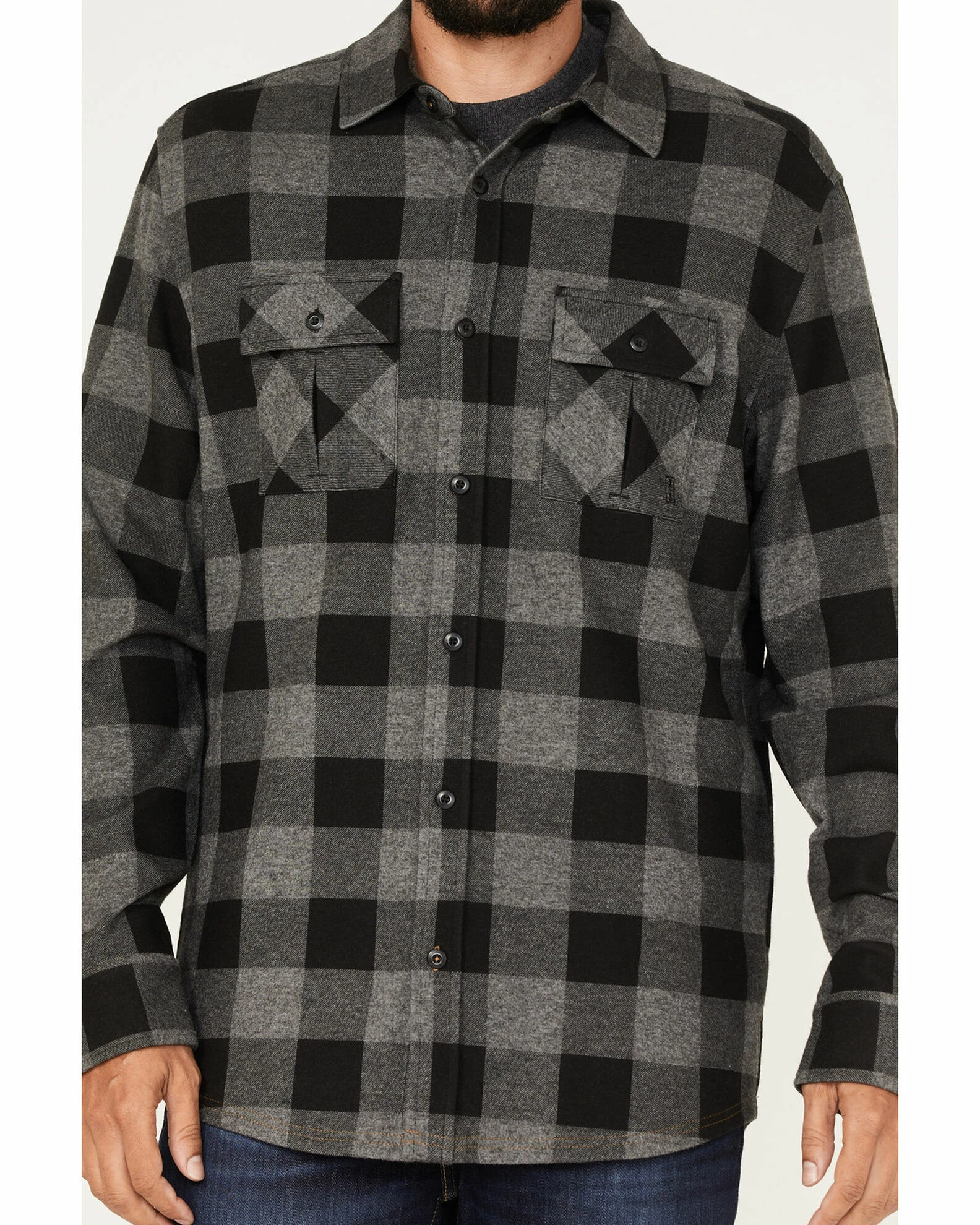 Brothers & Sons Men’s Large Jacquard Plaid Button-Down Western Shirt Charcoal