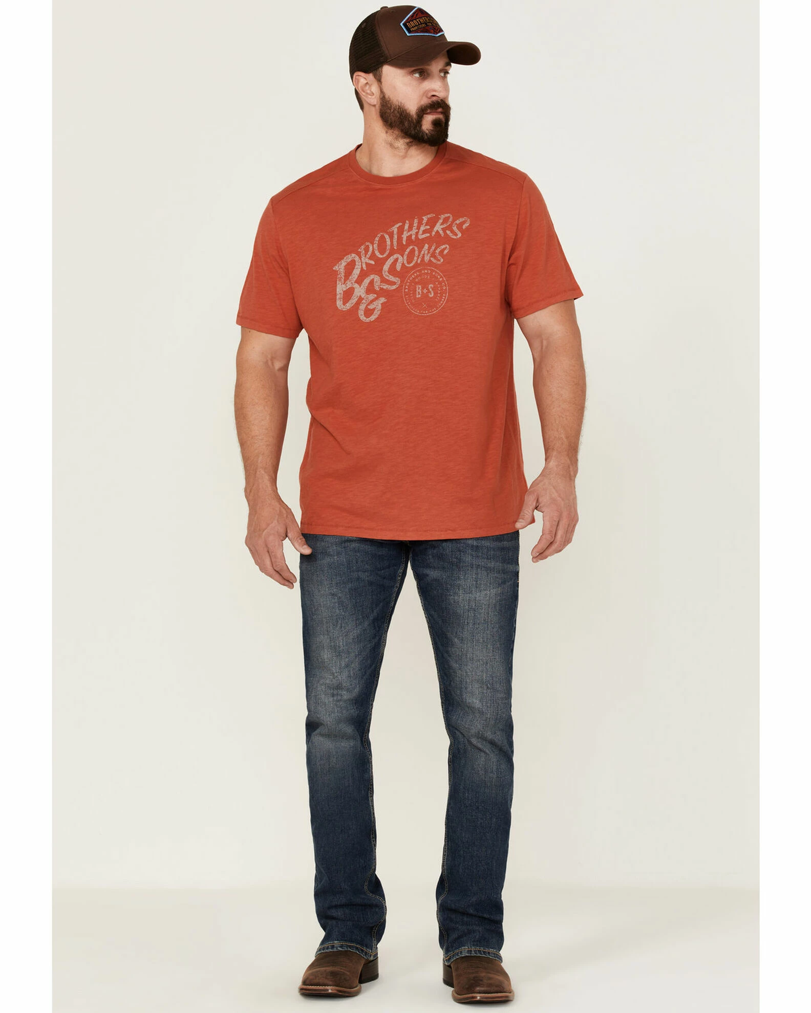 Brothers & Sons Men’s Mercentile Light Red Weathered Slub Graphic Short Sleeve T-Shirt