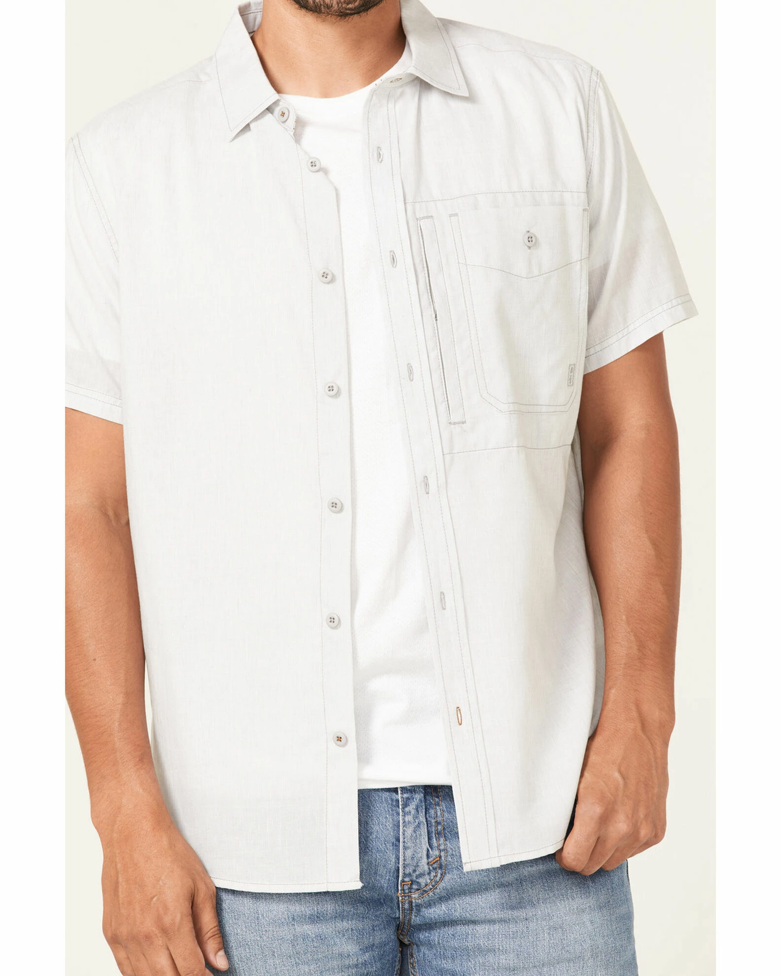 Brothers & Sons Men’s Performance Short Sleeve Button-Down Western Shirt Light Grey