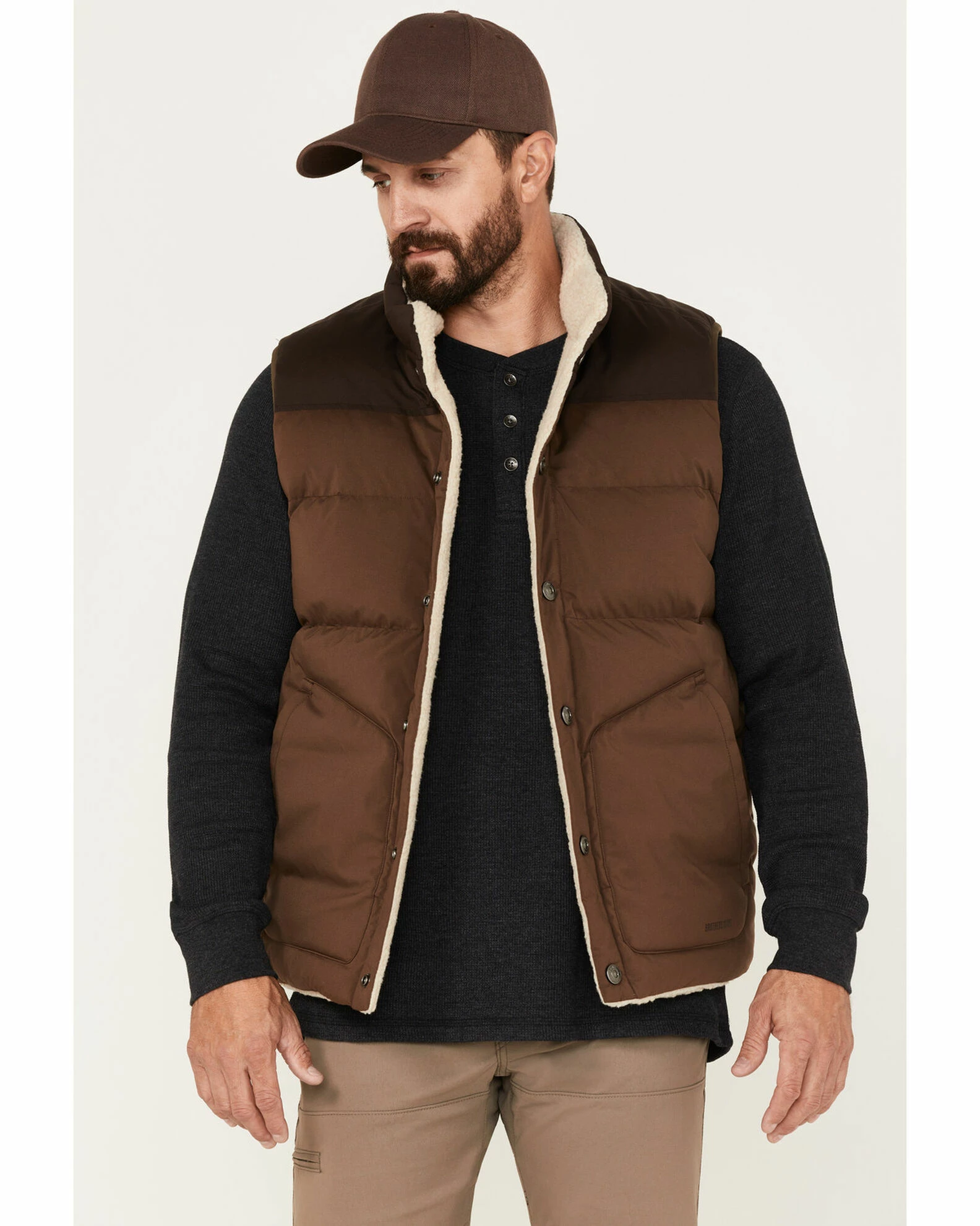 Brothers & Sons Men’s Reversible Sherpa Down Vest Brown
