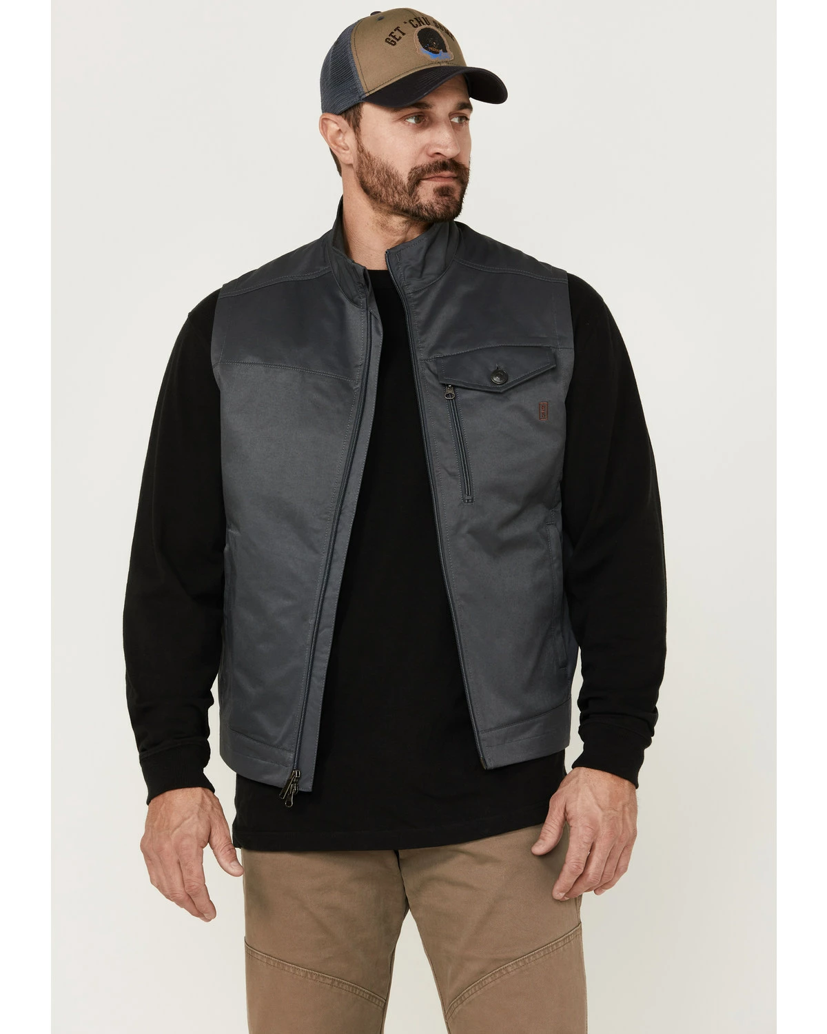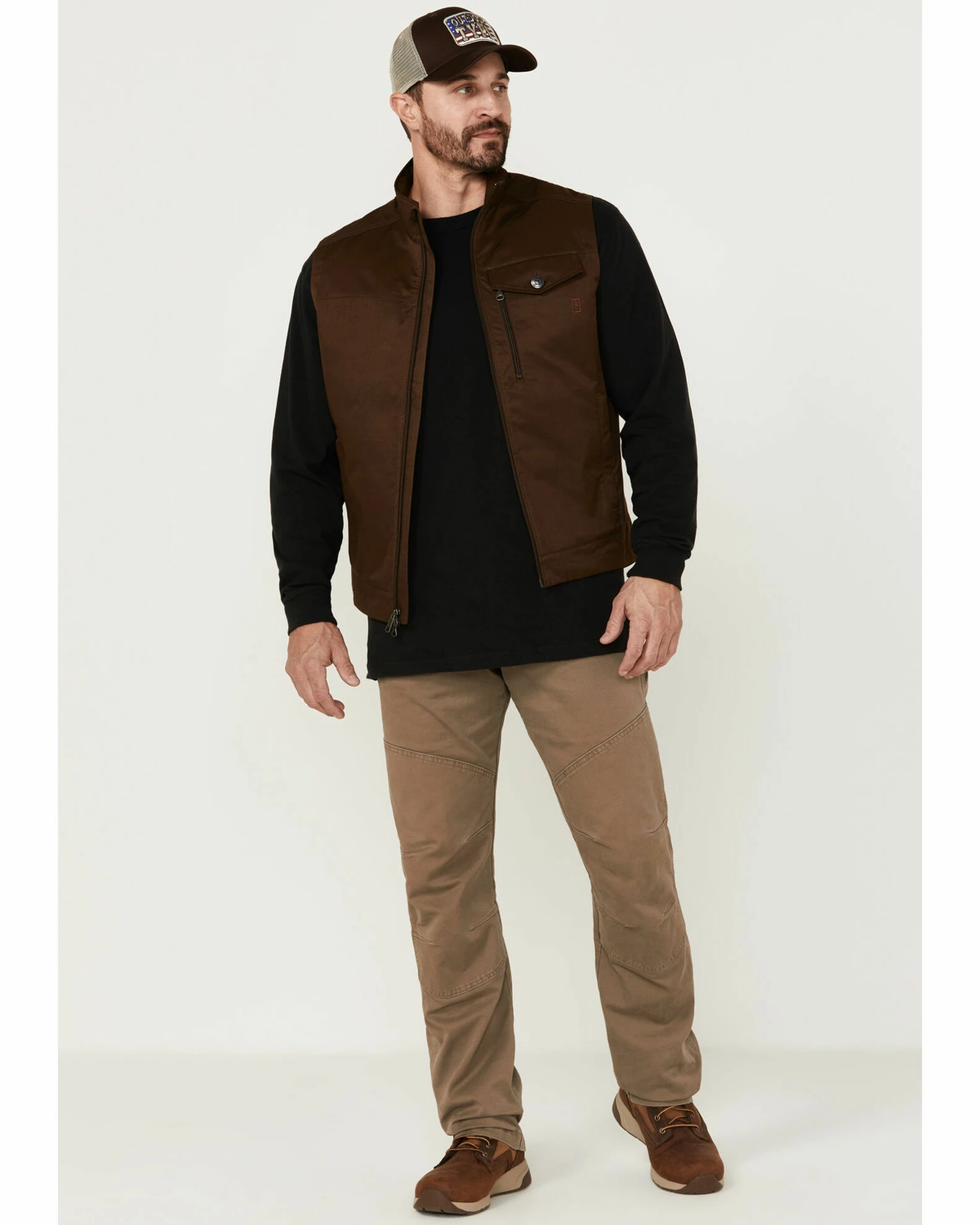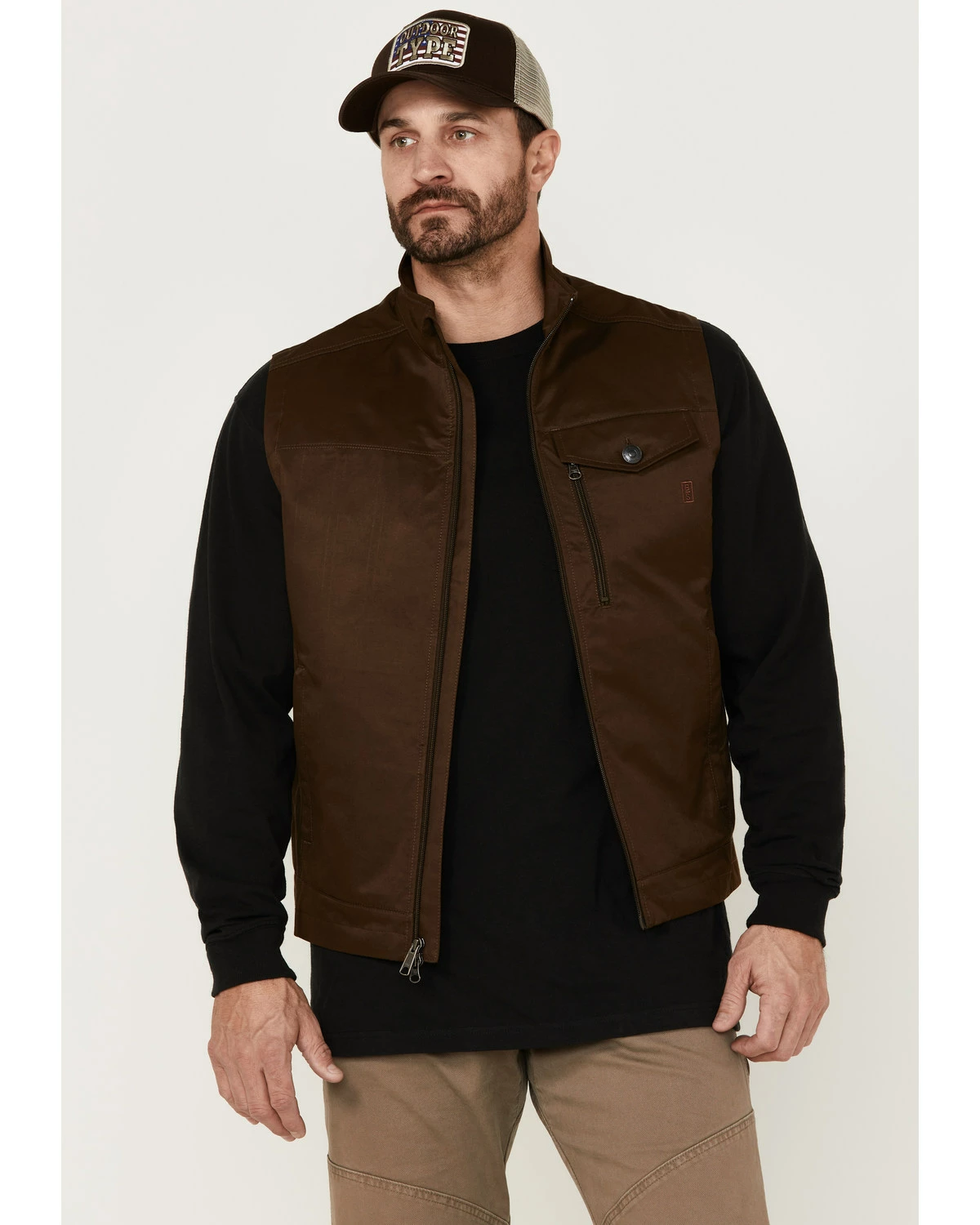 Brothers & Sons Men’s Solid Baby Twill CC Zip-Front Vest Brown