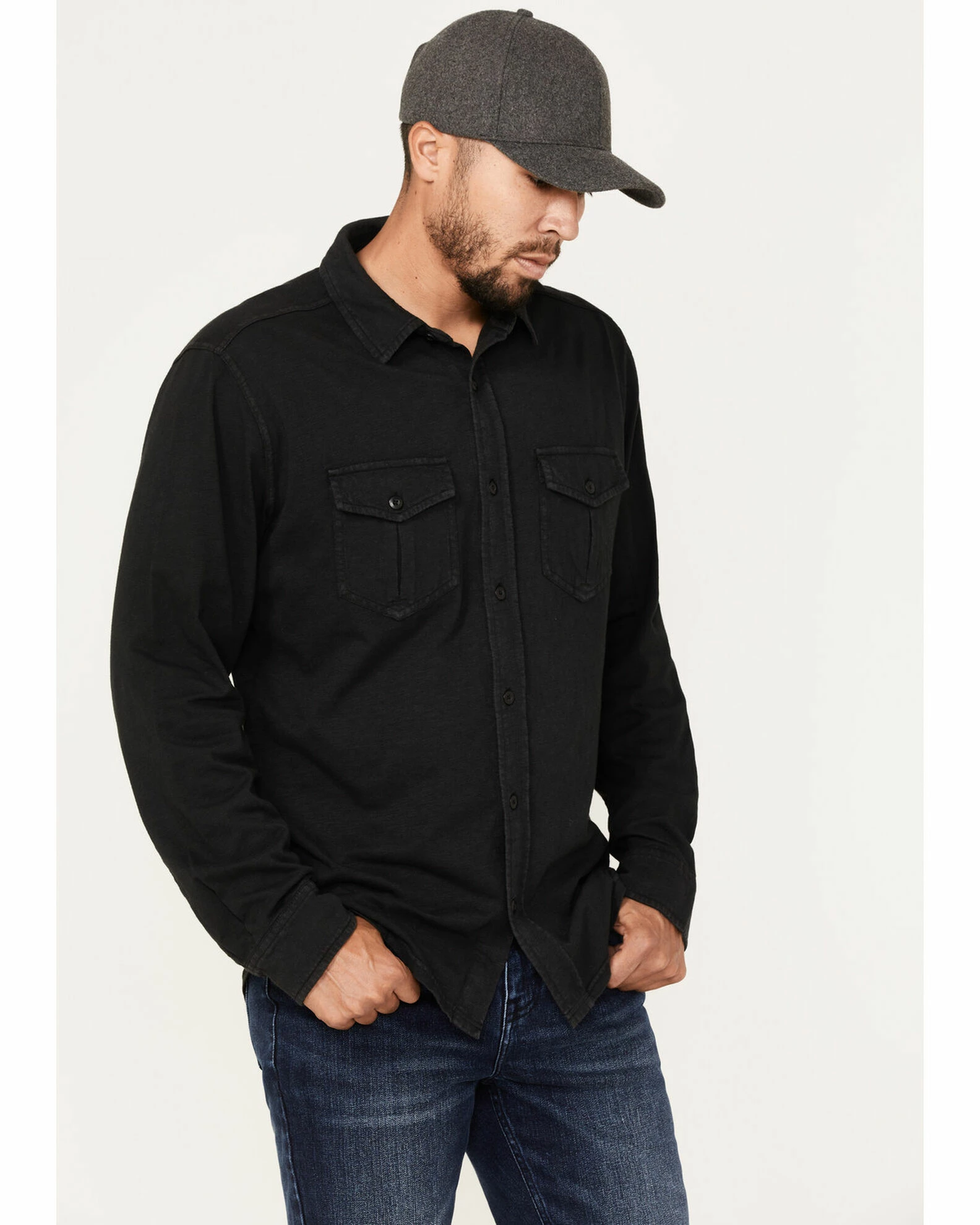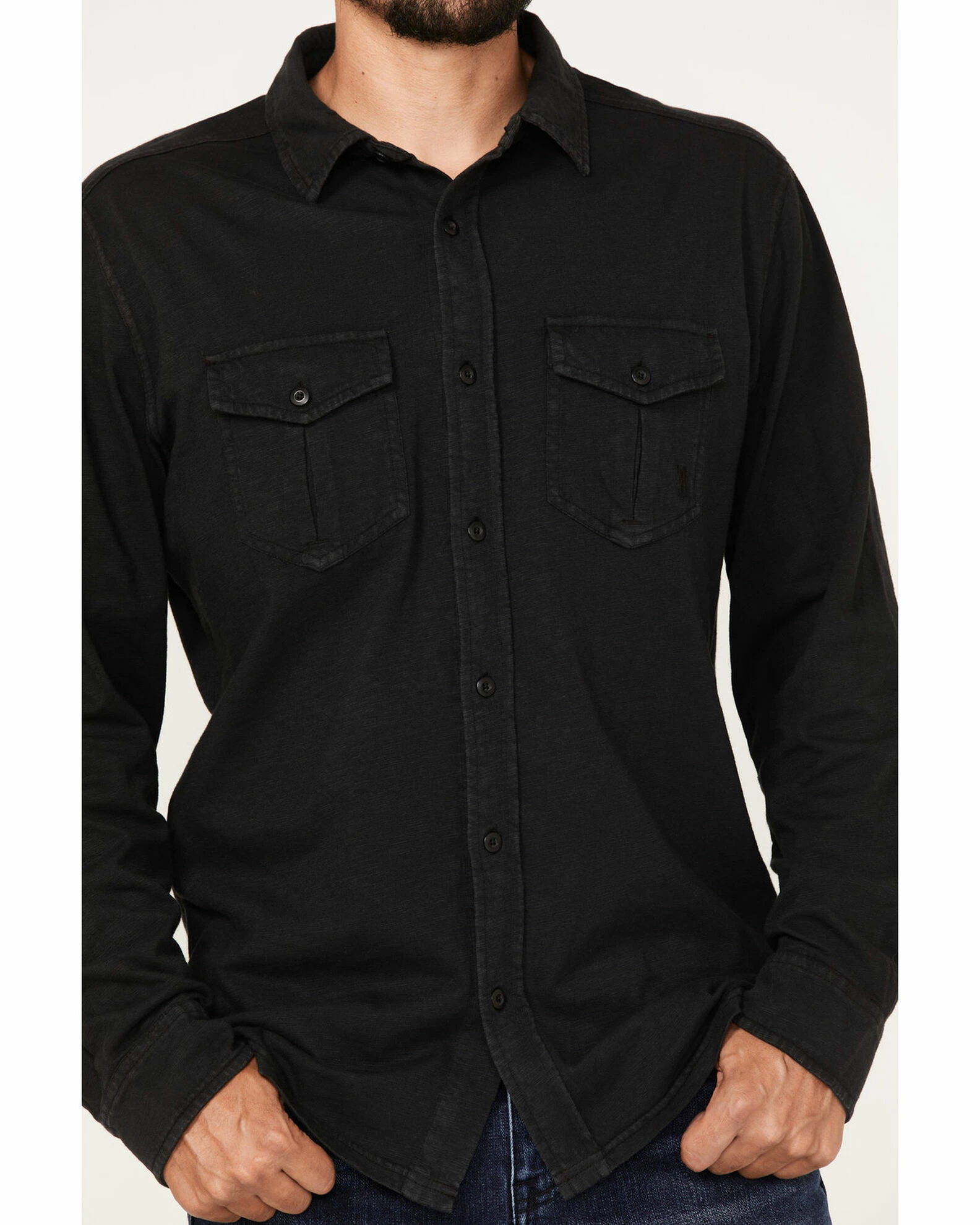 Brothers & Sons Men’s Solid Pigment Slub Button-Down Western Shirt Black