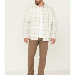 Brothers & Sons Men’s Fineline Stripe Everyday Long Sleeve Button-Down Western Flannel Shirt Sand